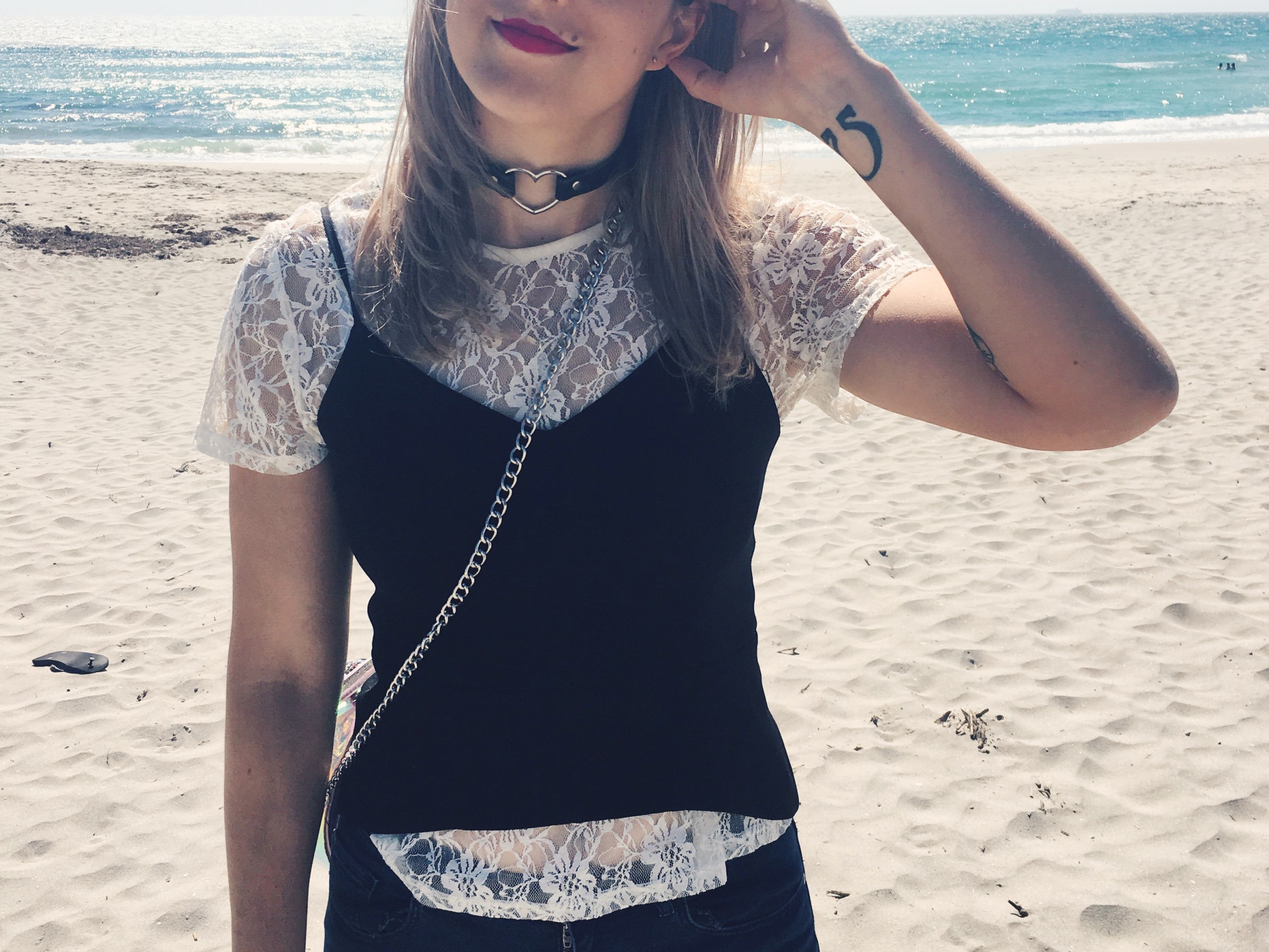 This outfit I put together is a take on the layered look. To achieve this I put two basics from my wardrobe together that are made out of different materials and paired them with some blue jeans. Lace adds a feminine touch and is complemented by the solid construction of the black singlet. This is a great transitional outfit especially when you want to reinvent some basics you already have. As for my awesome yin yang bag! My sister recently returned from her holiday in the U.K. and brought it back for me, so cute thanks Sophie!